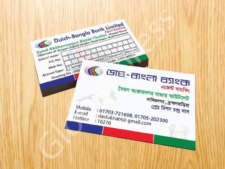 আমাদের ব্যাংক ভিজিটিং কার্ড ডিজাইন ও প্রিন্ট সার্ভিসে আপনি পাবেন সম্পূর্ণ অফিসিয়াল ও স্ট্যান্ডার্ড মানের কার্ড।
