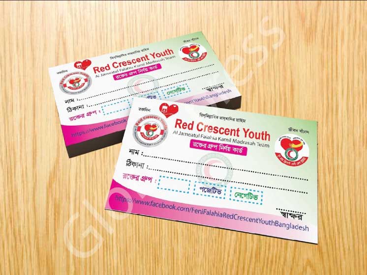 ব্যক্তিগত রক্তদাতা বা ব্লাড ডোনেশন সংগঠনের সদস্যদের জন্য আমরা দিচ্ছি পেশাদার ও মানবিক মানের ব্লাড ডোনার কার্ড ডিজাইন ও প্রিন্ট সার্ভিস।