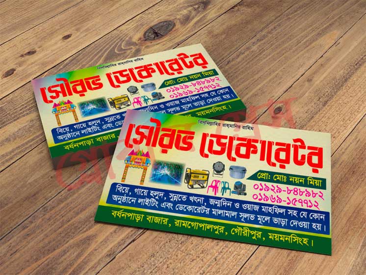 ডেকোরেশন ব্যবসার ক্ষেত্রে ভিজিটিং কার্ড হলো ক্লায়েন্টের কাছে আপনার কাজ ও ব্র্যান্ডের প্রথম পরিচয়।