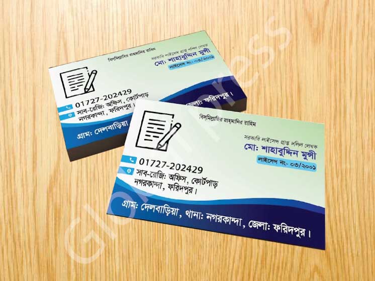 একজন দলিল লেখকের জন্য ভিজিটিং কার্ড হলো ক্লায়েন্টের কাছে পরিচয়, বিশ্বাসযোগ্যতা ও পেশাদারিত্বের প্রতীক।