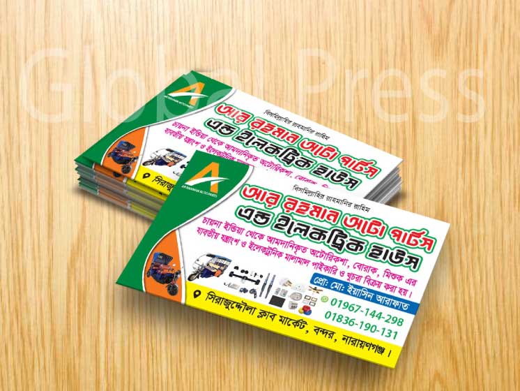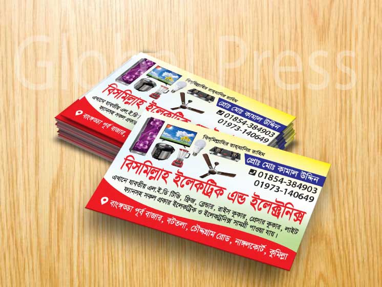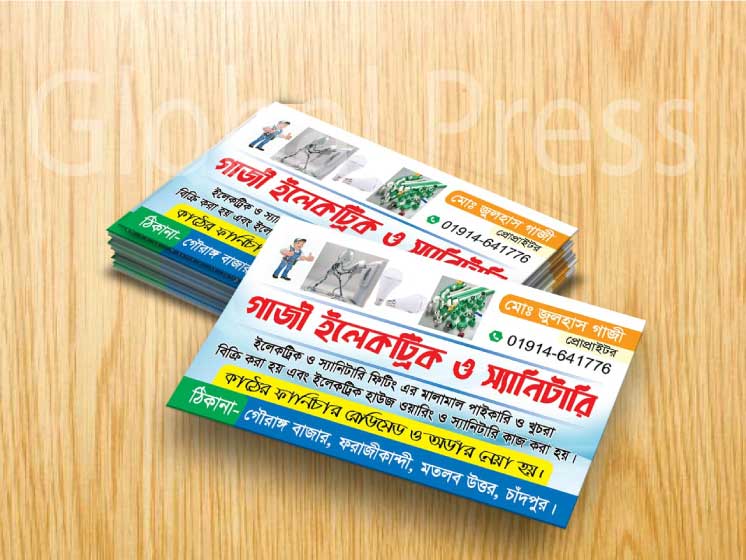 আমাদের Electric Visiting Card Design & Printing Service ইলেকট্রিক দোকান, ইলেকট্রিশিয়ান ও ইলেকট্রিক্যাল সার্ভিস প্রতিষ্ঠানের জন্য উপযোগী।