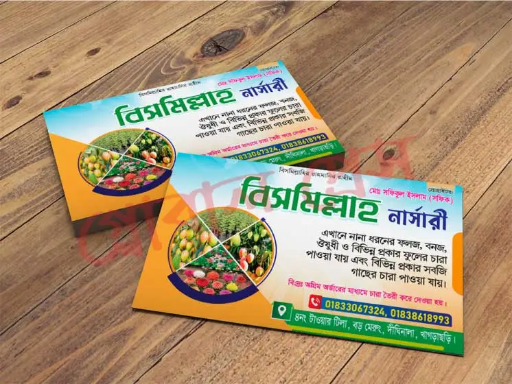 আপনার নার্সারির পরিচিতি ছড়িয়ে দিতে পেশাদার মানের নার্সারী ভিজিটিং কার্ড ডিজাইন ও প্রিন্ট সার্ভিস।