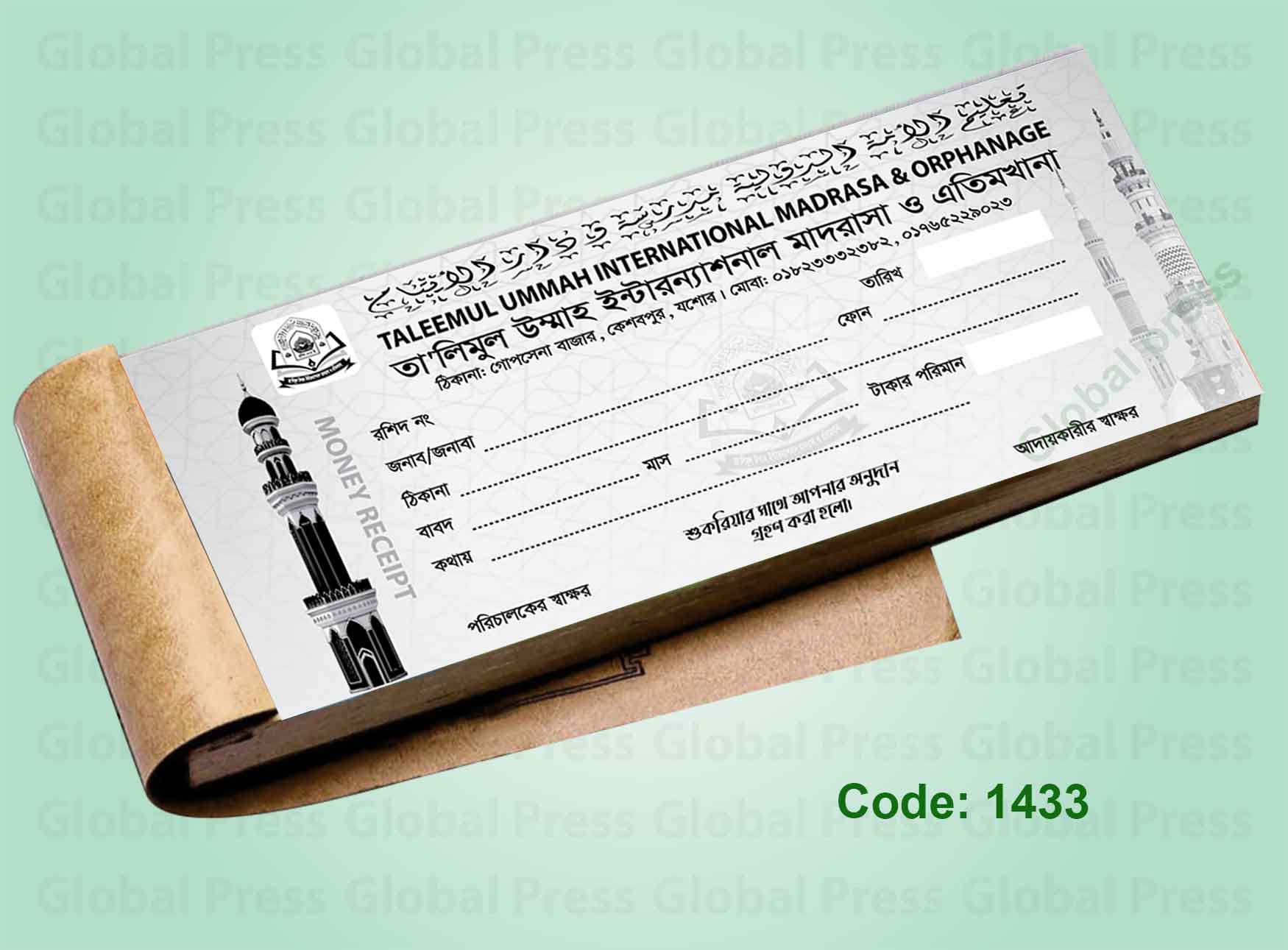 এতিমখানা মাদ্রাসার মানি রিসিট প্রিন্ট, অটো কার্বন বা ২ পার্ট সিস্টেমে মানি রিসিট প্রিন্ট। 7×3.2 ও 9×3.6 ইঞ্চি সাইজে ১, ২ বা ৪ কালার প্রিন্ট সুবিধা।