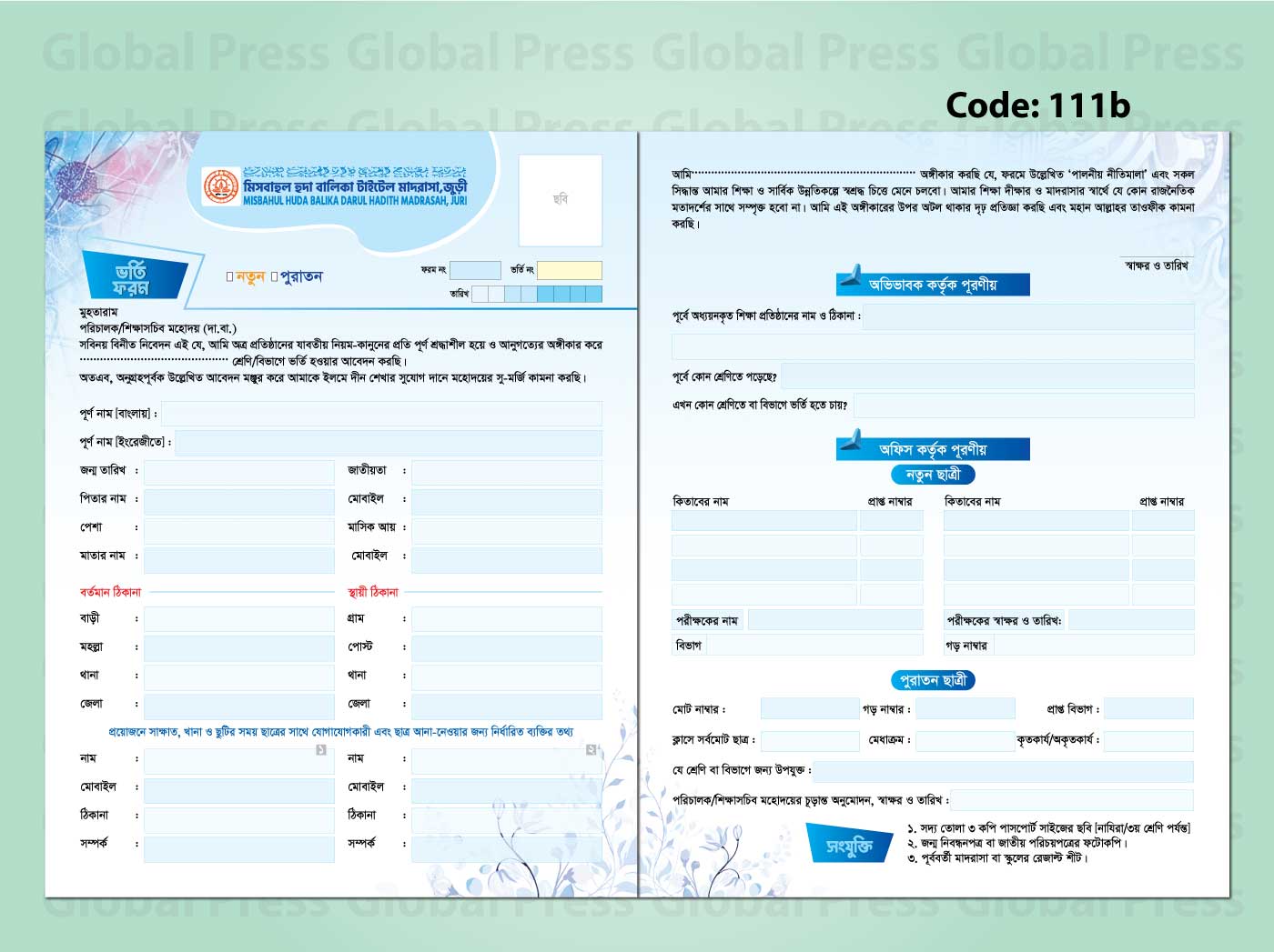স্কুল ভর্তি ফরম প্রিন্ট A4 বা লিগাল সাইজে। ৮০ বা ১০০ গ্রাম কাগজে ১ পাশ বা ২ পাশ এবং ১, ২ বা ৪ কালার প্রিন্ট সুবিধা। অর্ডার করুন Global Print BD থেকে।