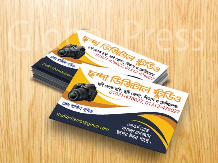 একটি আকর্ষণীয় 📸 স্টুডিও ভিজিটিং কার্ড আপনার কাজের মান ও ব্র্যান্ড ইমেজকে করে আরও শক্তিশালী ও প্রফেশনাল।